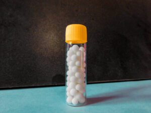 A bottle of Homeopathic medicine isolated on a surface